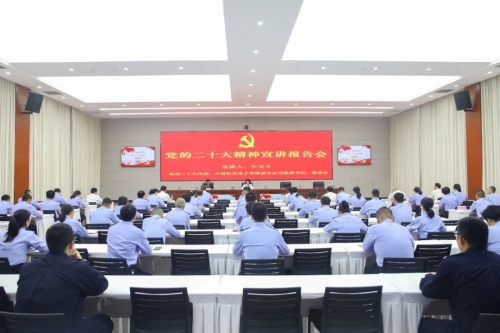 近日,市公安局举办党的二十大精神宣讲报告会。邀请党的二十大代表、甘肃虹光电子有限责任公司党委书记、董事长牛文斗作了宣讲报告。市局党委副书记、分管日常工作的副局长牛青霞主持会议。