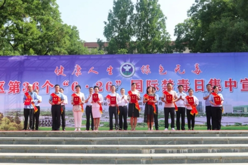 活动中,市、区禁毒委领导分别向“禁毒形象大使”和“禁毒小卫士”颁发证书,向“创建全省禁毒示范区先锋队”授旗,“禁毒形象大使”和“禁毒小卫士”代表分别作了发言。