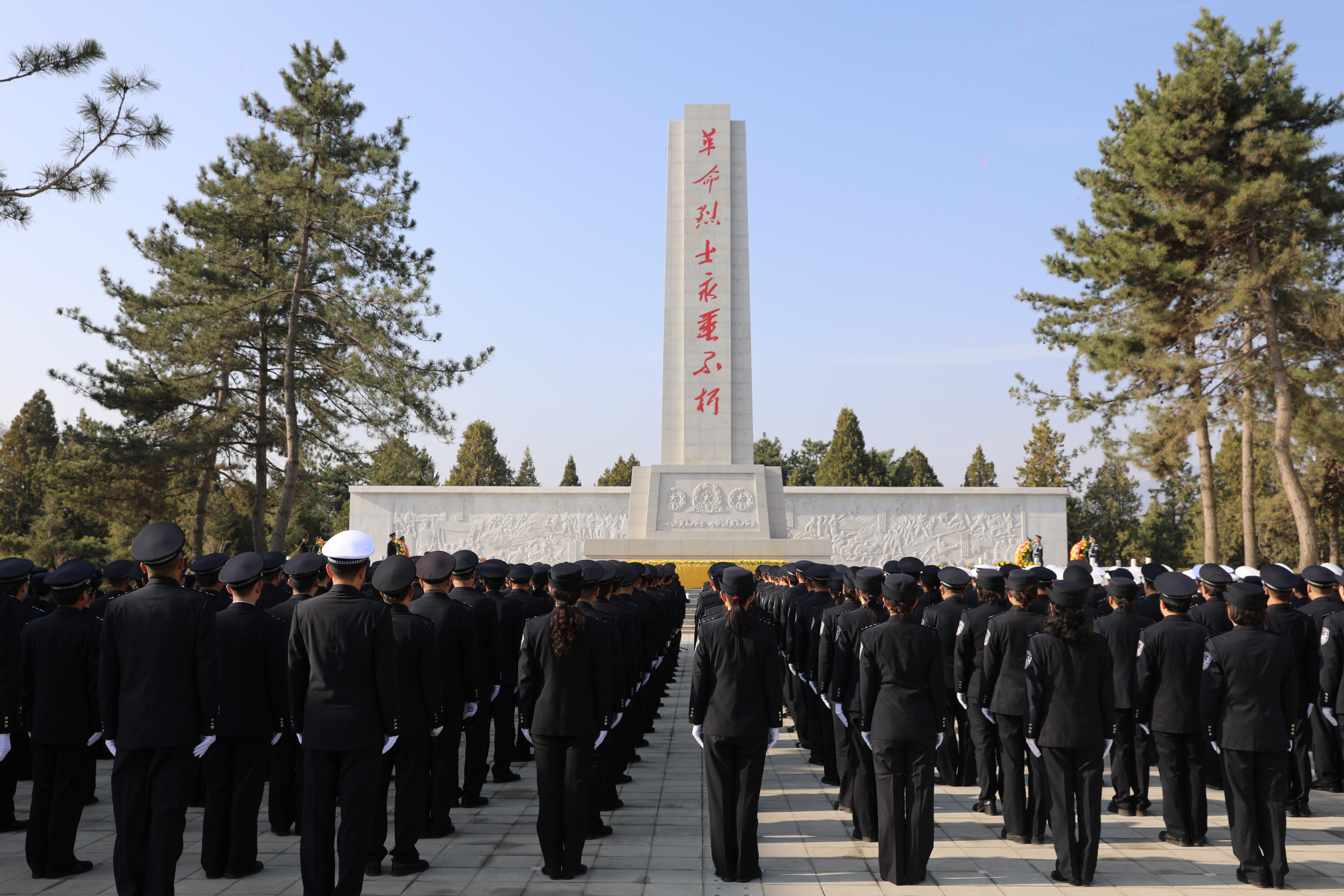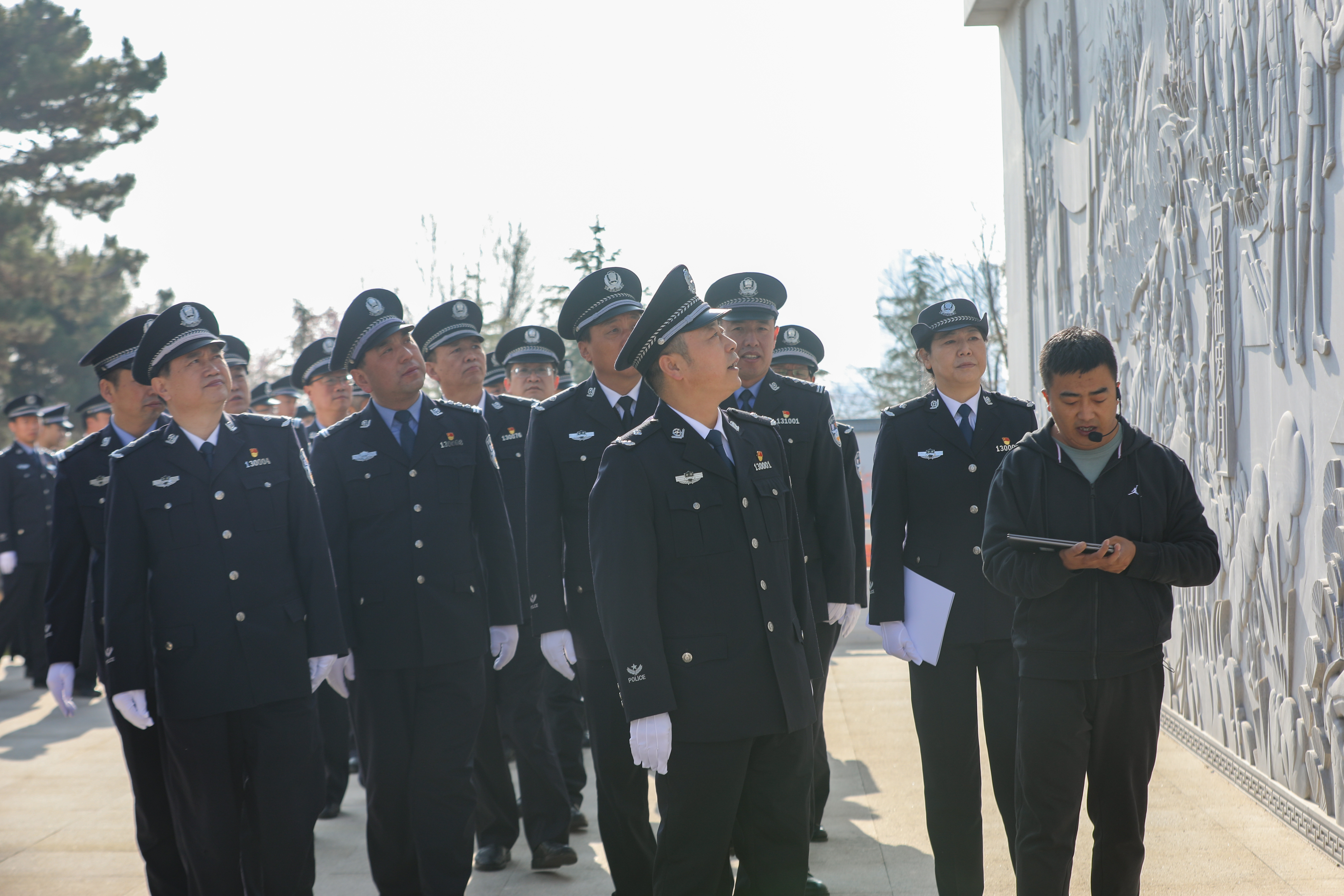 仪式在雄壮的国歌声中开始,全体民辅警整齐列队、警容严整、神情肃穆,向革命先烈和公安英烈默哀致敬,并向公安英烈敬献花篮。随后,大家面向中国人民警察警旗开展人民警察宣誓活动,依次参观浮雕墙、烈士英名墙、革命史迹陈列馆和爱国主义教育馆,缅怀革命先烈和公安英烈的丰功伟绩,寄托对革命先烈的无限哀思。