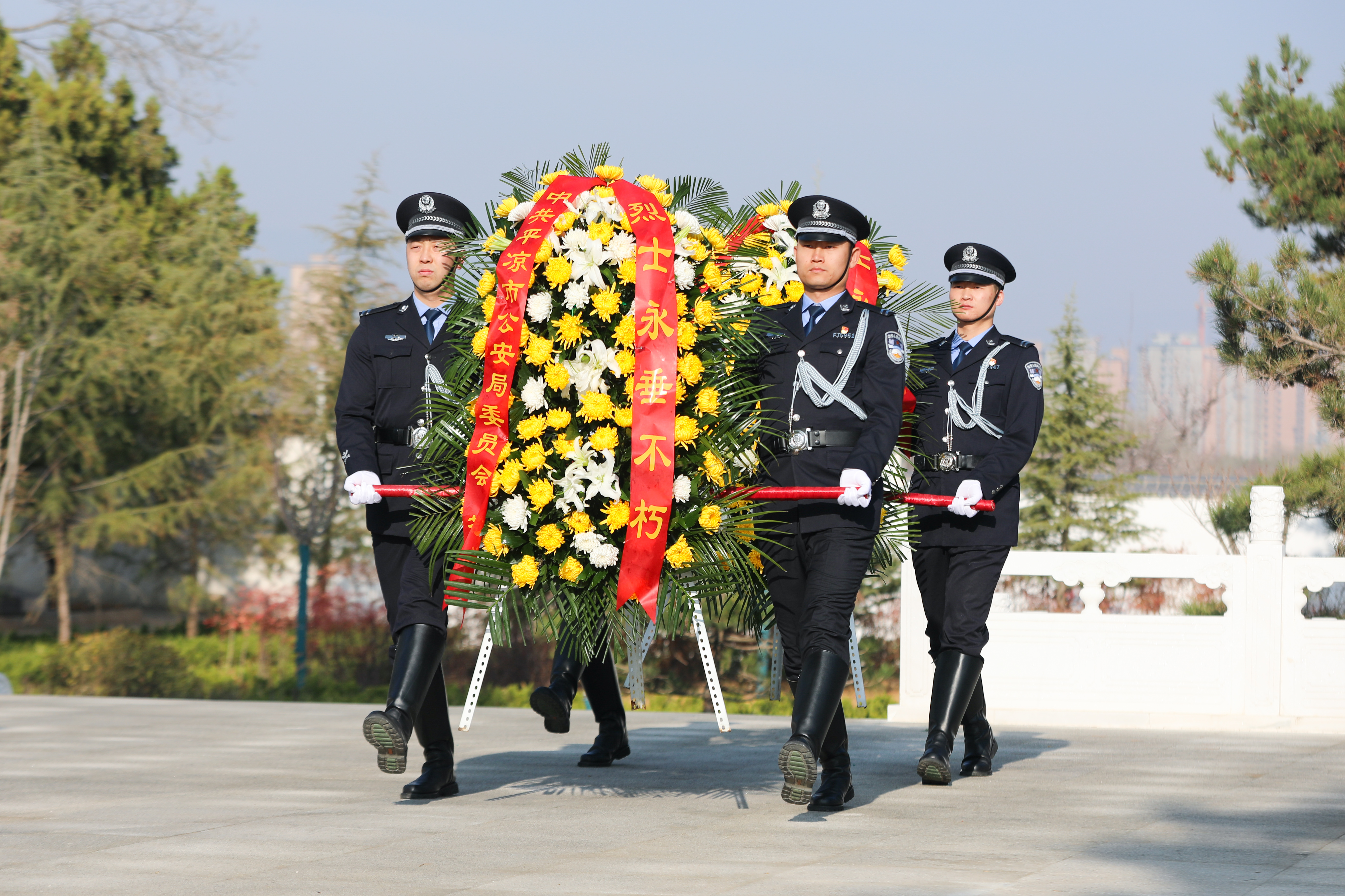 为弘扬英烈精神、传承红色基因,深切缅怀革命先烈和为人民公安事业英勇牺牲的公安英烈。4月1日上午,平凉市、区公安机关在平凉烈士陵园纪念广场隆重举行公安英烈纪念活动,追思英烈事迹,铭记使命担当。副市长、市公安局党委书记、局长寇正德出席活动。市局党委副书记、分管日常工作的副局长牛青霞主持活动。市、区公安局党委班子成员,各部门负责人和民辅警代表共400余人参加活动。