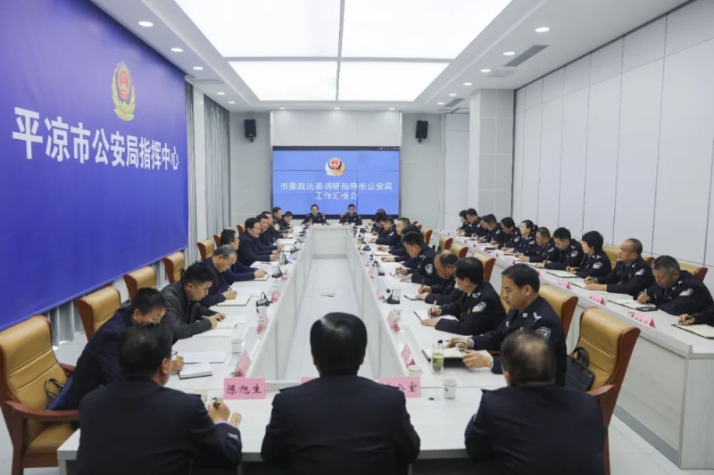 王晓军指出,近年来,全市公安机关坚持以习近平新时代中国特色社会主义思想为指导,深入贯彻落实习近平法治思想,牢牢把握对党忠诚、服务人民、执法公正、纪律严明总要求,忠实履行新时代使命任务,为全市高质量发展和社会大局稳定作出了重要贡献。王晓军强调,要始终牢记“公安姓党”这一根本政治属性,坚持和加强党的全面领导绝对领导,坚持统筹发展和安全,全力抓好防风险、保安全、护稳定、促发展各项工作,为全面建设社会主义现代化幸福美好新平凉开好局起好步创造更加安全稳定的政治社会环境。王晓军要求,要在强化立根铸魂中把牢政治方向,旗帜鲜明讲政治,坚持党的绝对领导,扎实开展政治体检,切实把绝对忠诚、绝对纯洁、绝对可靠落到实处。要在贴心为民服务中夯实政治根基,感情上始终贴近群众,工作中竭诚服务群众,把工作深深扎根群众,用心用情保民安、护民利、惠民生。要在全面履职尽责中强化政治担当,深入推进主动创稳,加强社会治理创新,全力护航发展大局,持续深化公安改革,更好维护和塑造社会安全稳定局面。要在从严管党治警中涵养政治生态,坚决落实新时代党的建设总要求,强化干部日常监督、执法司法监督、法纪敬畏之心,确保队伍永不变质、永不变色、永不变味。要在锻造过硬铁军中提高政治能力,着力锤炼专业本领、改进工作作风、落实从优待警,不断提高干警专业素养、专业水平和履职能力,为平安平凉、法治平凉建设做出新的更大贡献。市委政法委分管日常工作的副书记路韬,市委政法委副书记李良军,市综治中心主任信红军参加调研。市公安局在家党委班子成员、局属各部门主要负责同志参加汇报会。