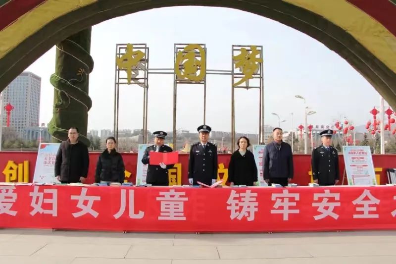 3月6日上午,平凉市、区公安机关联合市妇联、市法院、市检察院、市教育局等17家反拐联席会议成员单位,在绿地广场组织开展“关爱妇女儿童 铸牢安全之盾”、“全力构筑维护妇女儿童权益法治防线”主题宣传活动。平凉市公安局副局长王利东出席活动并致辞,市妇联副主席穆小菊出席并宣布启动仪式。