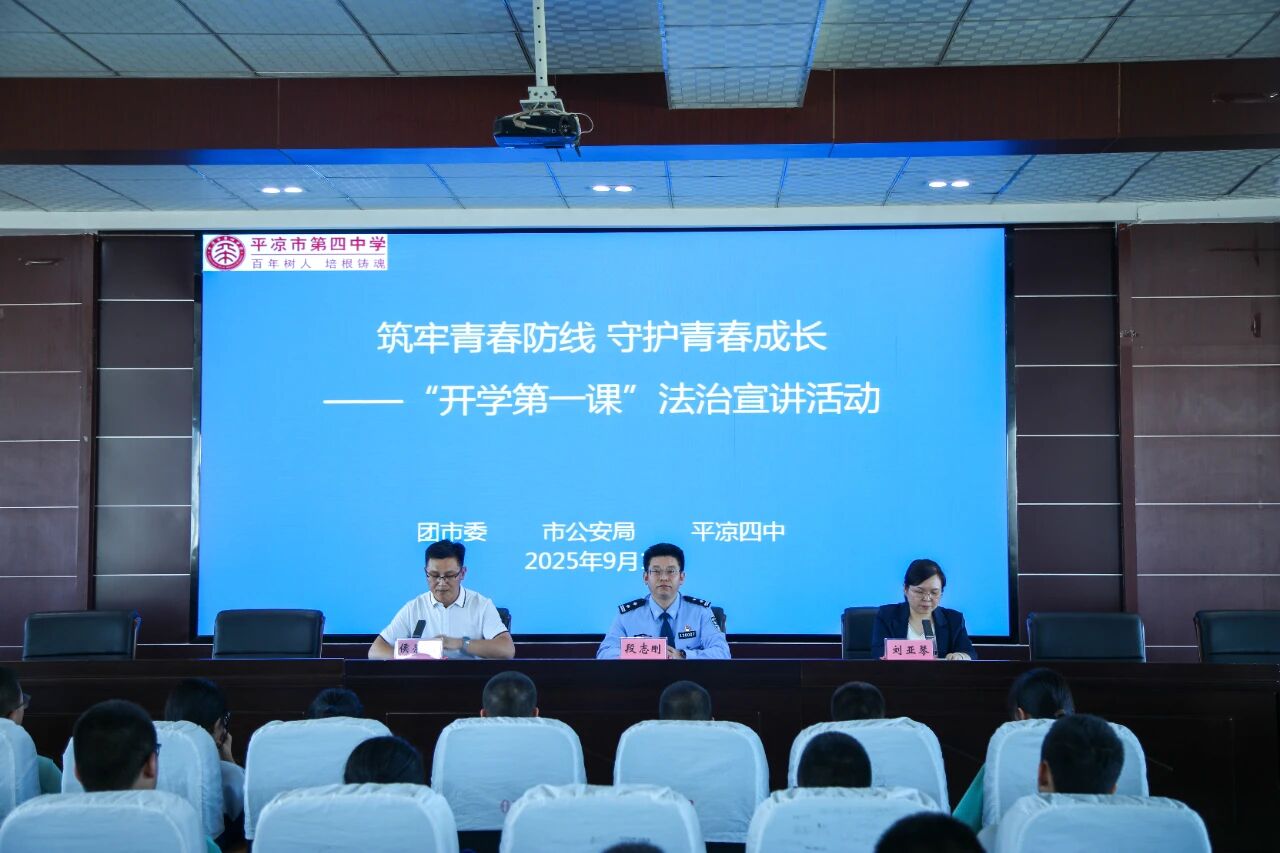 秋风送爽,丹桂飘香。新学期伊始,为进一步推进平安校园建设,护航学生安全健康成长,有效提升学生安全防范意识与自我保护能力。9月1日,市公安局团委联合团市委在平凉市第四中学开展“开学第一课”宣讲活动,为200余名师生代表普及法律知识。市公安局党委委员、政治部主任段志刚,团市委副书记、市少工委主任刘亚琴出席活动并讲话。