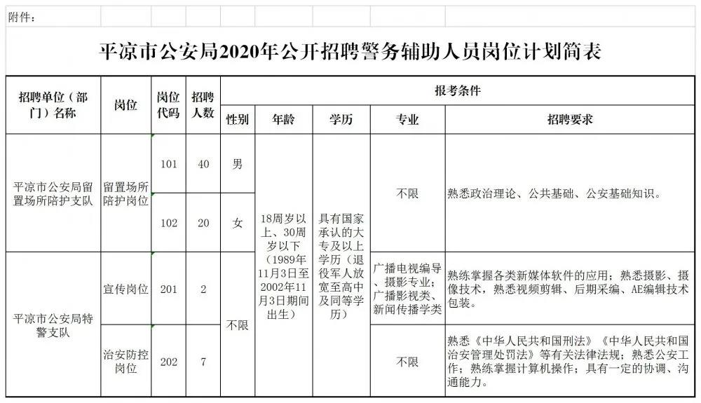 附件:平凉市公安局2020年公开招聘警务辅助人员岗位计划简表