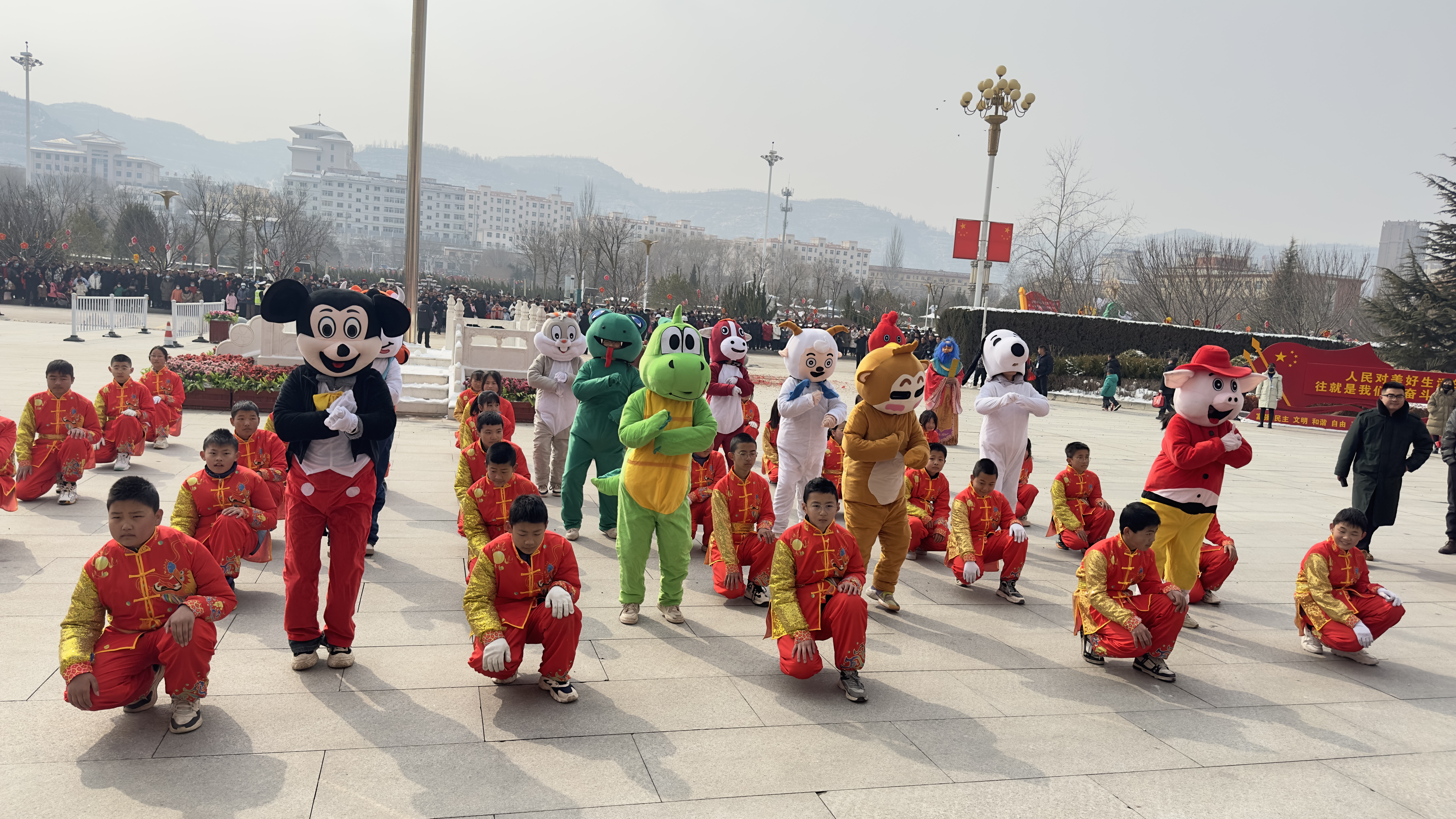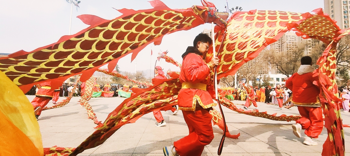 铿锵有力的锣鼓声、不绝入耳的鞭炮声,舞龙、舞狮、踩高跷、说春官等一系列精彩的民俗文化节目相继亮相,欢腾热闹的表达着新春祝福,为广大市民群众奉上一份精美的文化大餐。