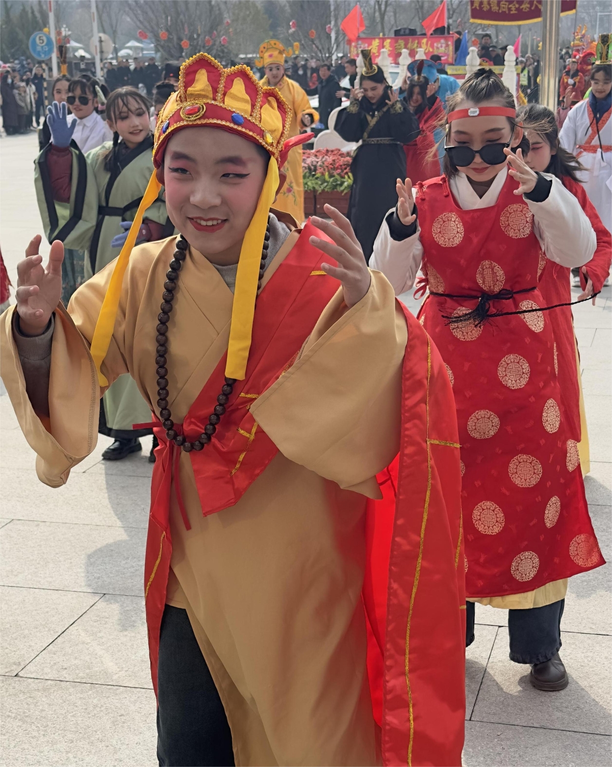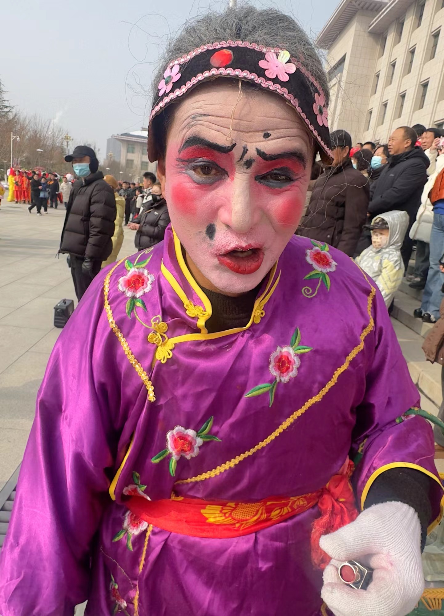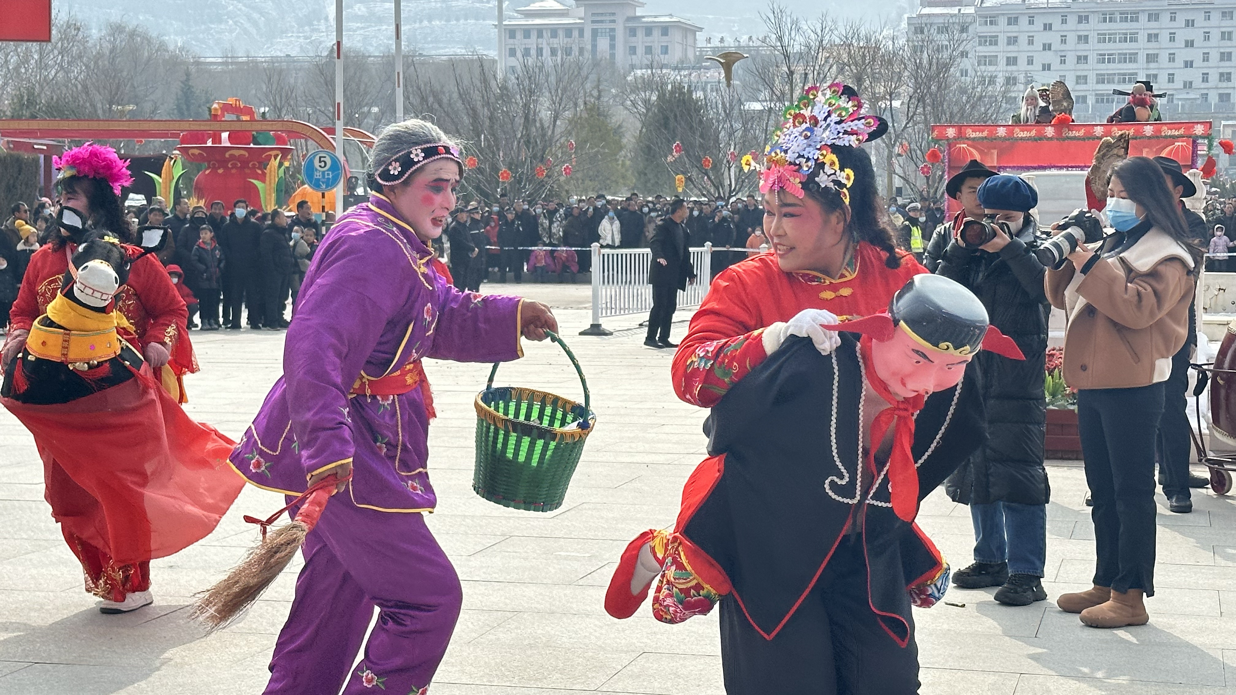 观众里三层外三层,叫好声、鼓掌声此起彼伏,现场暖意融融,映衬出一派红红火火的节日景象。
