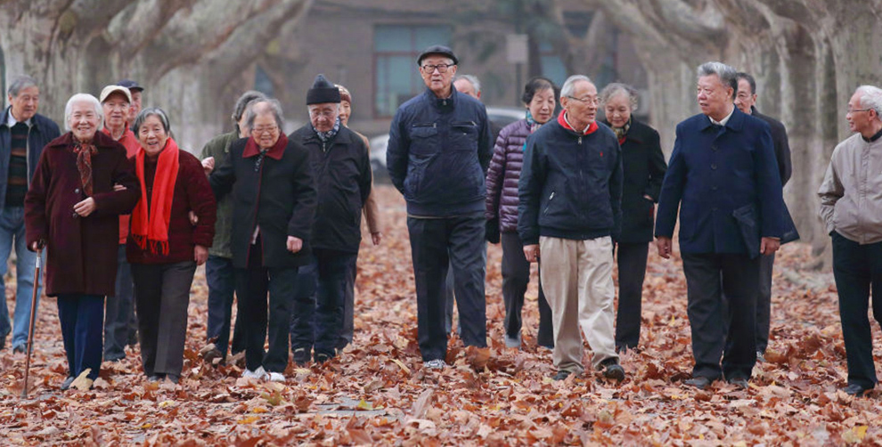 西安交通大学校园里有一条著名的梧桐大道,这些梧桐树是60多年前西迁时从南方运来栽种的,如今已成参天大树。图为部分西迁老教授行走在梧桐大道上。(资料图片)