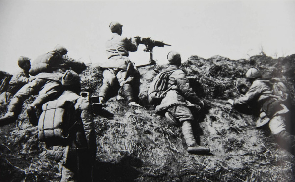 百团大战将《论持久战》的思维理念和灵活制敌的战争方略发挥得淋漓尽致。图为百团大战中的我军机枪阵地。