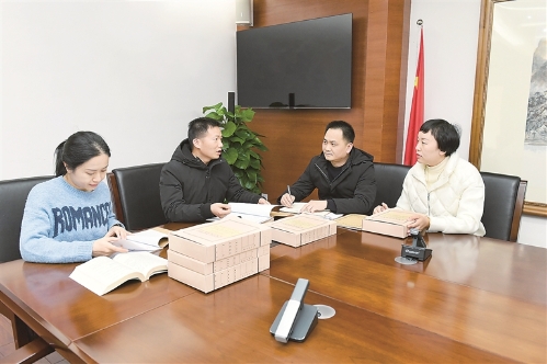 图为桂林市纪委监委案件审理室工作人员围绕韦绍艺案有关问题进行研讨。夏捷 摄