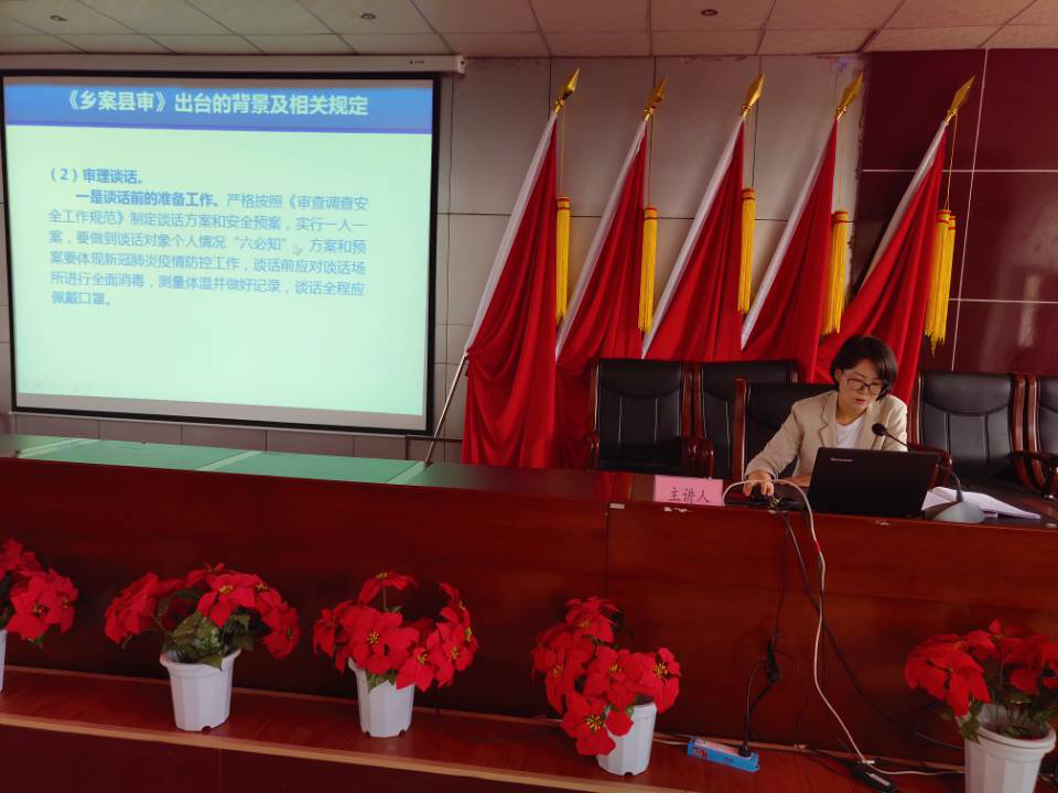 县纪委案件审理室副主任江宁宁围绕“乡案县审”及案件审理工作中常见问题辅导培训