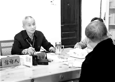 图为第九届全国“人民满意的公务员”姚石玉接待信访群众。