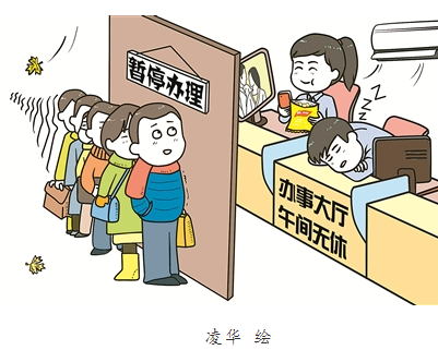 办证大厅大门紧闭,前来办事的群众只能在寒风中排着长队等候;工作人员上班时间玩手机、睡觉、吃零食,浏览与工作无关的网页;办事效率极低,仅办理公积金一项,群众有时就要跑三四趟……2018年年底,因怠慢冷落群众、出工不出力,广西壮族自治区北海行政审批局领导班子被集体免职。其中暴露出的不担当、不作为问题,直指当前个别干部出工不出力、在岗不在状态的“庸懒散混”作风。