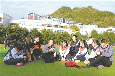 图为近日,重庆市酉阳土家族苗族自治县委巡察组工作人员在向学生了解教育扶贫资金落实到位情况。杨春来 摄