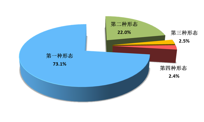 2018年,全省纪检监察机关运用监督执纪“四种形态”处理41033人次。其中,第一种形态29986人次,占“四种形态”处理总人次的73.1%;第二种形态9013人次,占22%;第三种形态1037人次,占2.5%;第四种形态997人次,占2.4%。