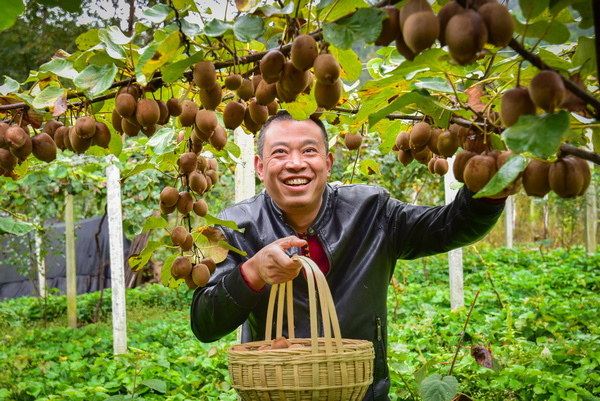 四川省青川县茶坝乡月明村因地制宜鼓励贫困群众发展猕猴桃种植业,今年猕猴桃取得大丰收,群众喜笑颜开。(四川省青川县纪委监委供 何思德 摄)