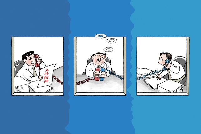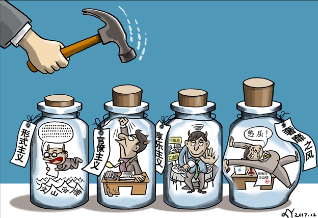 党的十八大以来,党中央从落实中央八项规定精神破题,大力整治形式主义、官僚主义、享乐主义和奢靡之风,刹住了许多人认为不可能刹住的歪风。风气有所好转,但必须清醒地看到,“四风”问题具有顽固性复杂性,特别是形式主义、官僚主义问题在一些地区和领域仍然突出。反对“四风”尤其是形式主义、官僚主义不能空喊口号、空泛表态,要继续在常和长、严和实、深和细上下功夫,拿出“抓铁有痕、踏石留印”的劲头,一抓到底。(本文插画/刘晓亮 孙宝欣 方少华 洪琥 周喜悦)