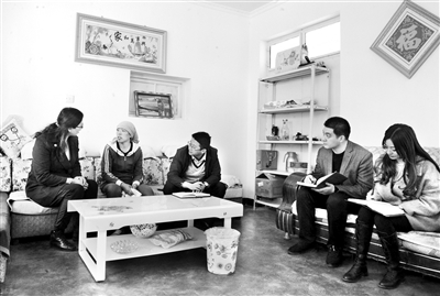图为近日,在甘肃省纪委监委组织的扶贫领域专项治理交叉检查中,平凉市纪委监委检查组在兰州市榆中县兴隆山村入户走访。(王衡 摄)