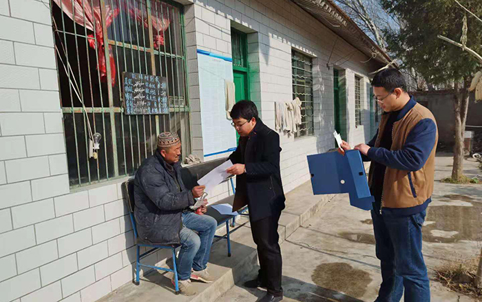 图为平凉市华亭市东华镇纪检干部在月圆村就扶贫政策、扶贫资金和帮扶措施的落实情况开展入户访查。