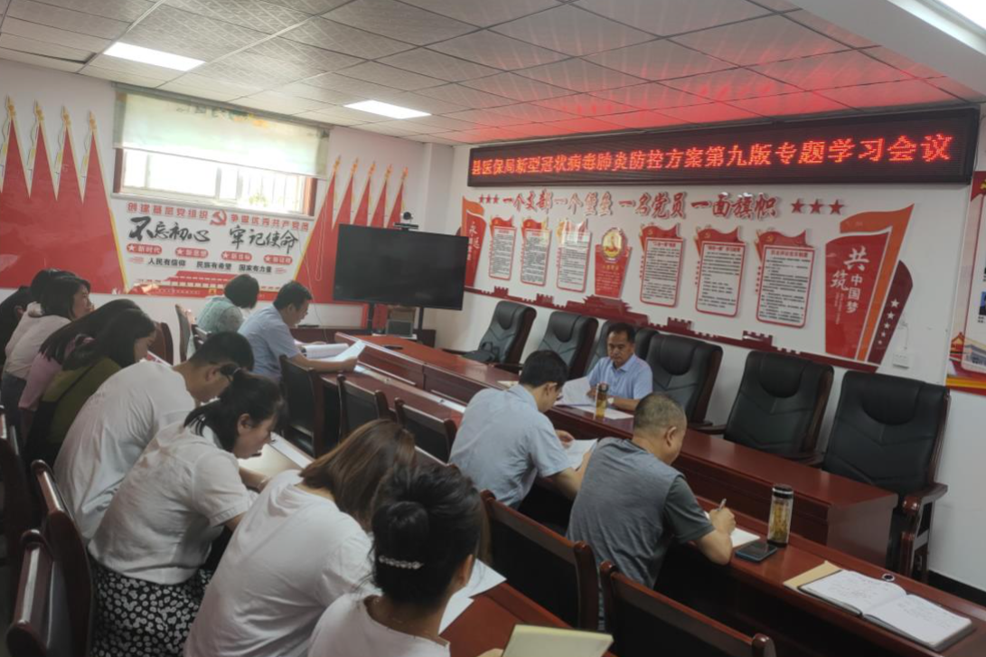 会上,传达学习了近期国家、省、市、县疫情防控工作有关会议精神,根据各级疫情防控工作要求,结合实际,对当前疫情防控工作做了进一步安排部署。会议组织集中学习了《新型冠状病毒肺炎防控方案》(第九版)内容,重点围绕第九版防控方案修订背景和主要内容,以及疫情防控工作的新要求进行全面学习和详细解读,并就落实方案精神,做好疫情防控下一步工作进行了安排。