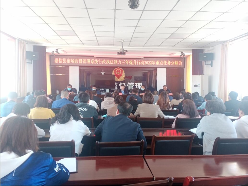 为进一步规范行政执法行为,提升行政执法能力,促进严格规范公正文明执法,近日,崇信县市场监督管理局召开全系统行政执法能力三年提升行动2022年重点任务分解会,局机关全体职工及局属单位、基层所负责人和业务人员共计50余人参加了会议。