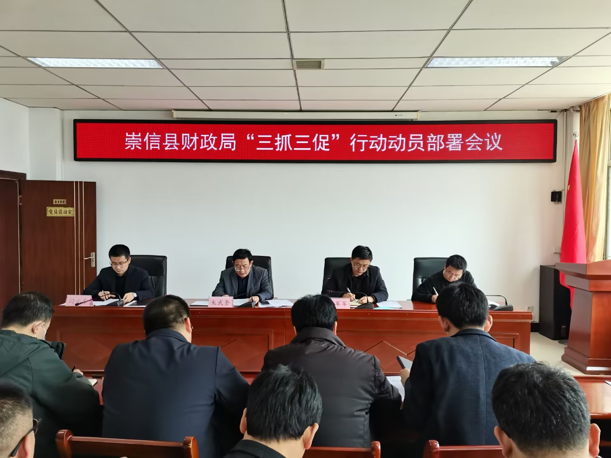 2月17日,县财政局召开“三抓三促”行动动员部署会议,传达学习省、市、县动员部署会议精神,解读《崇信县财政局“三抓三促”行动实施方案》,安排部署贯彻落实工作。县财政局党组书记、局长朱武奎同志主持会议并讲话,局机关全体干部职工和各乡镇财政所长参加会议。