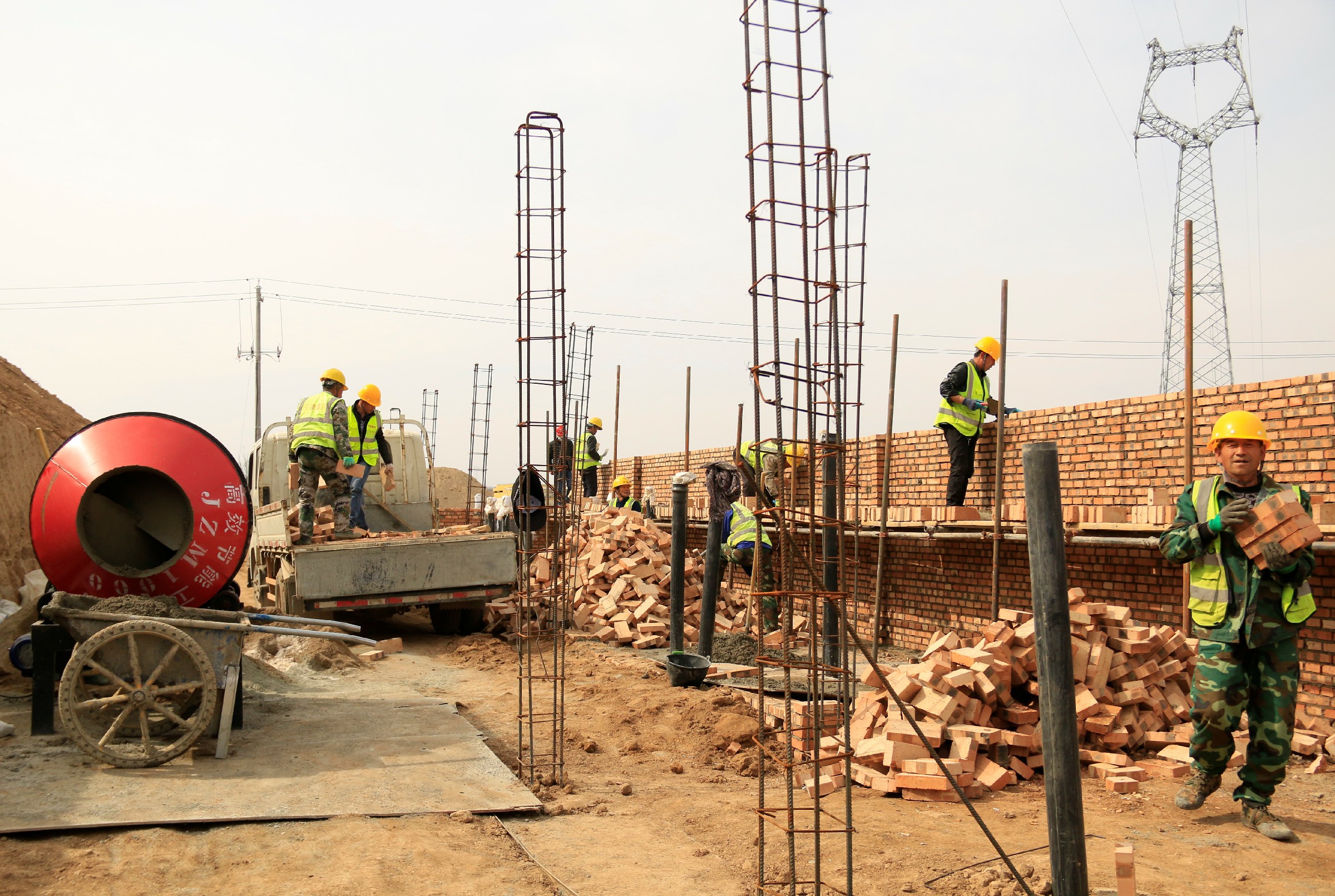 记者在崇信东方希望畜牧有限公司杨家沟繁殖场看到,施工人员正在紧张有序进行施工作业,砌墙、抹灰、绑扎钢筋、搭建脚手架,一派热火朝天的繁忙景象。