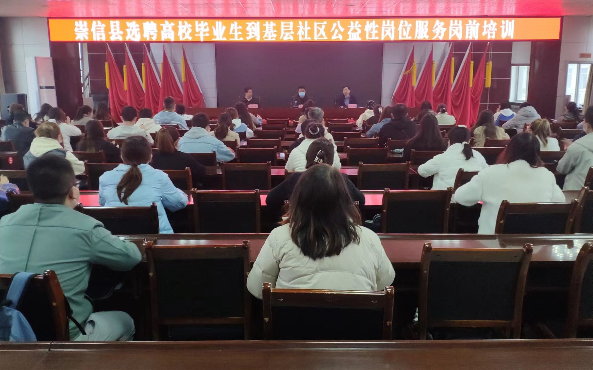 10月28日,崇信县选聘高校毕业生到基层社区公益性岗位服务人员岗前培训开班仪式在县委党校举行。