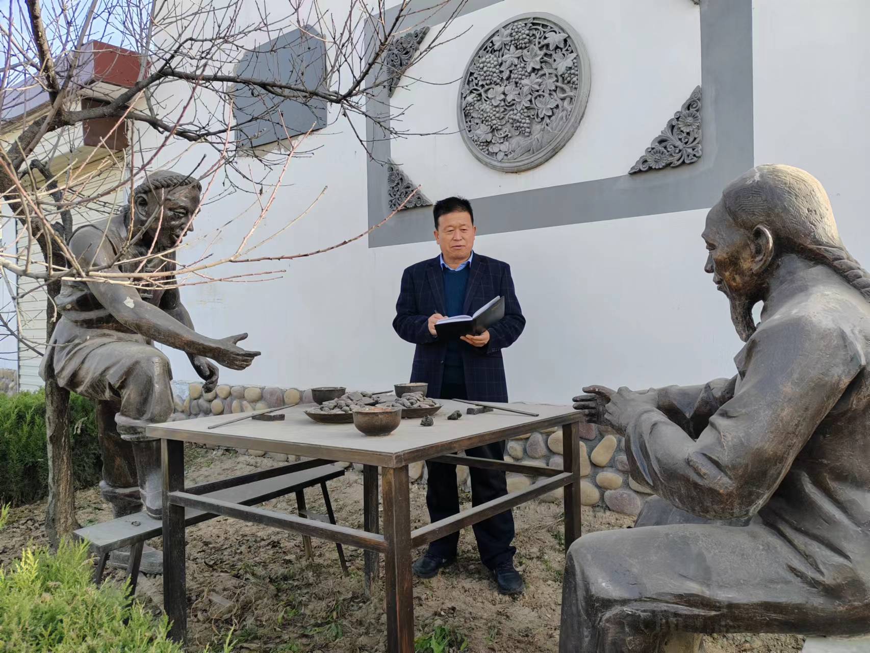 闫小杰先后对赵湾村的古槐、老泉、古宅、老人“四老”历史人文进行了实地采风,在与多位老人及村干部交流中,他深深的感触到近年来赵湾村在产业发展、农文旅融合、非遗传承等方面取得了喜人变化, 赵湾村两千多年树龄的古槐、多处明清民国时期的古宅、千年老泉以及耄耋之年的老者,都无不激发了他创作的热情与灵感。
