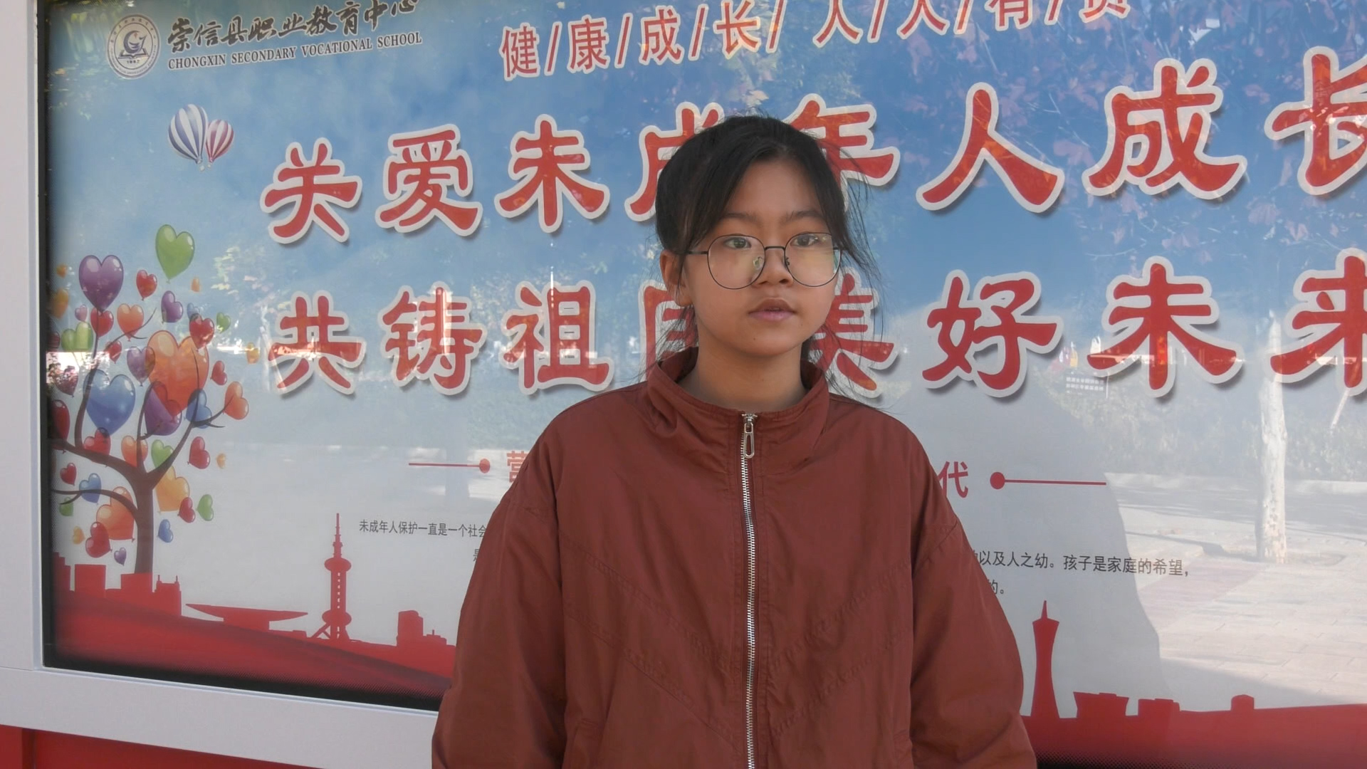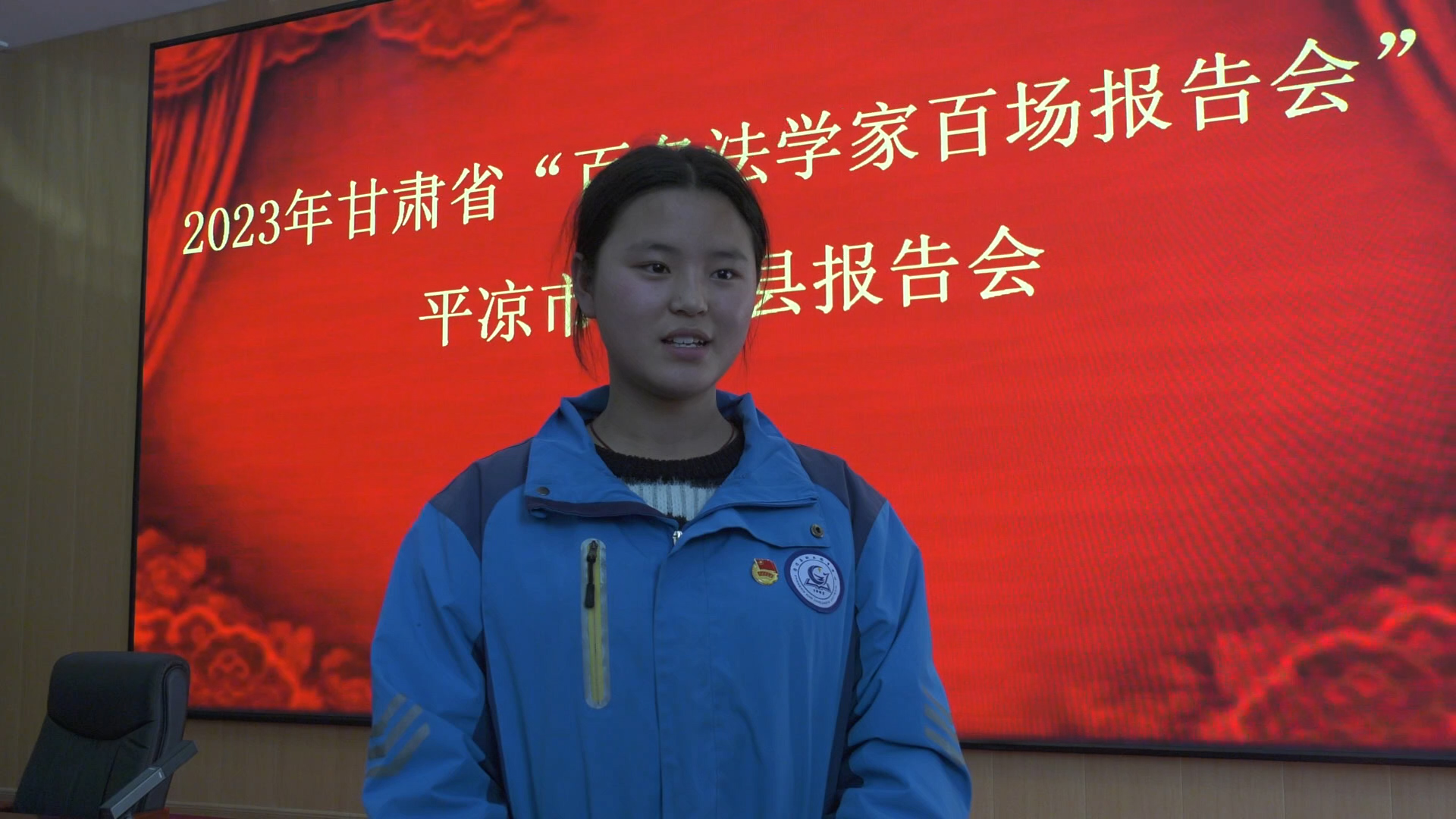 崇信县职中学生位亚妮说:“ 在今后的学习中,我会依法律己,依法办事,依法维护自己的合法权利,作一个遵守法律的中职学生。