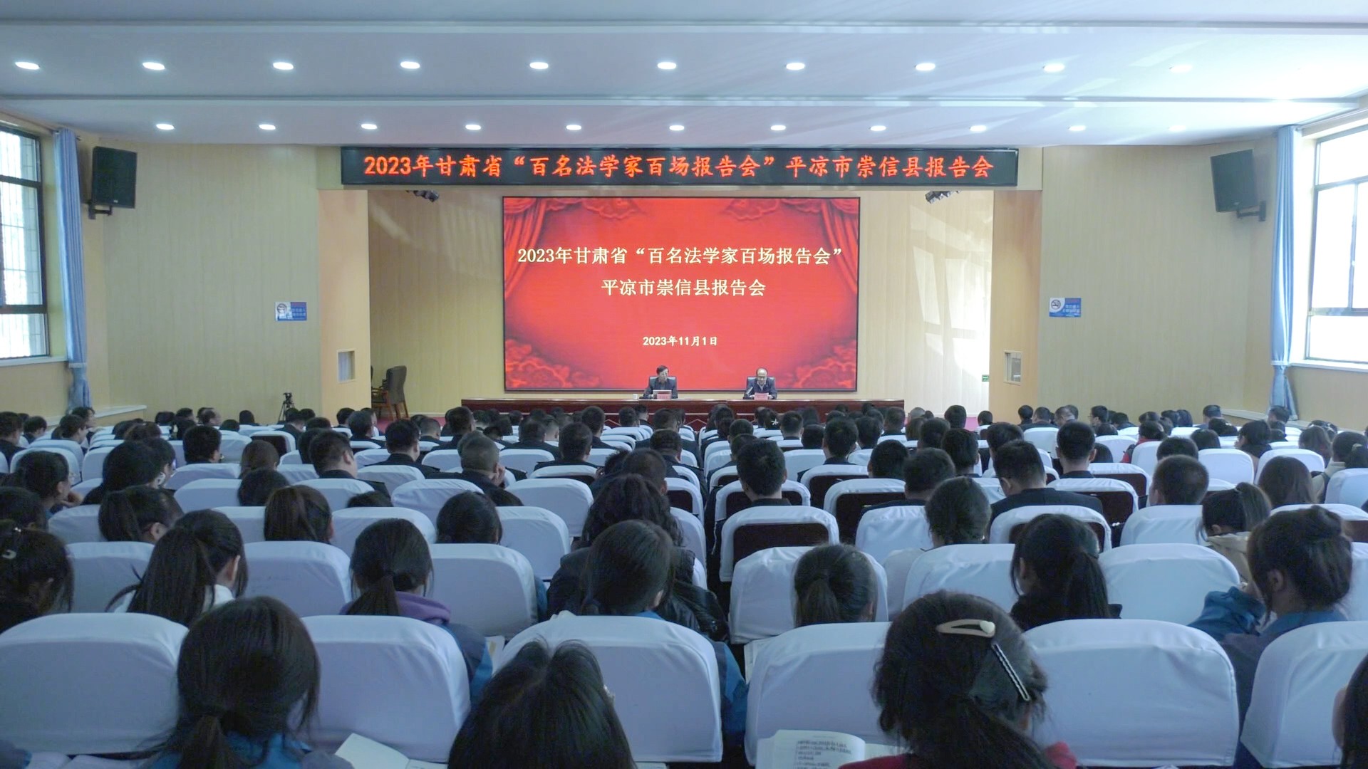 11月1日,2023年甘肃省“百名法学家百场报告会”平凉市崇信县报告会在县职教中心举行,邀请市委党校教授李国玺围绕《未成年人保护法》和《预防未成年人犯罪法》等内容作专题报告。县政府副县长、县公安局局长温磊主持报告会。