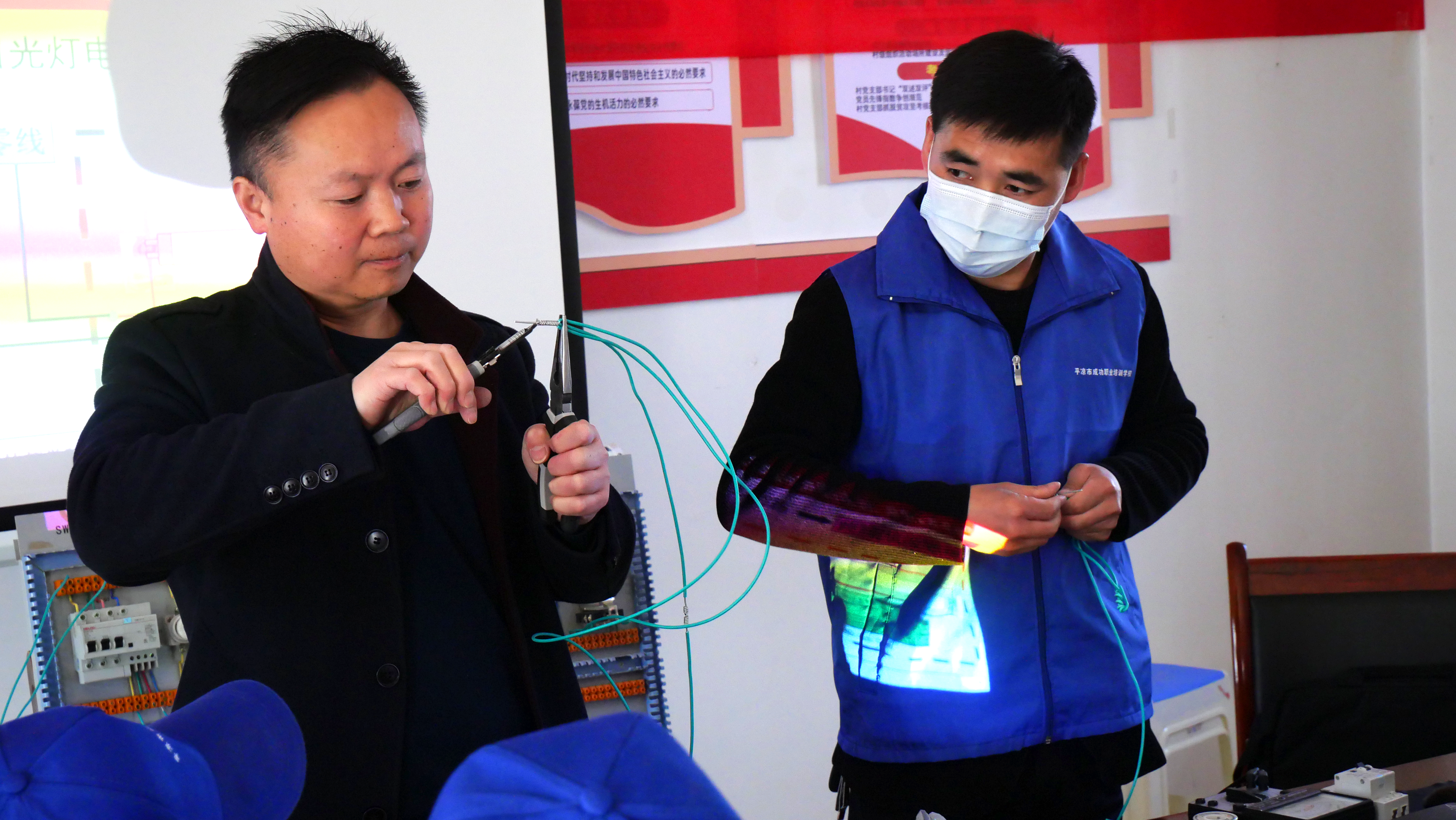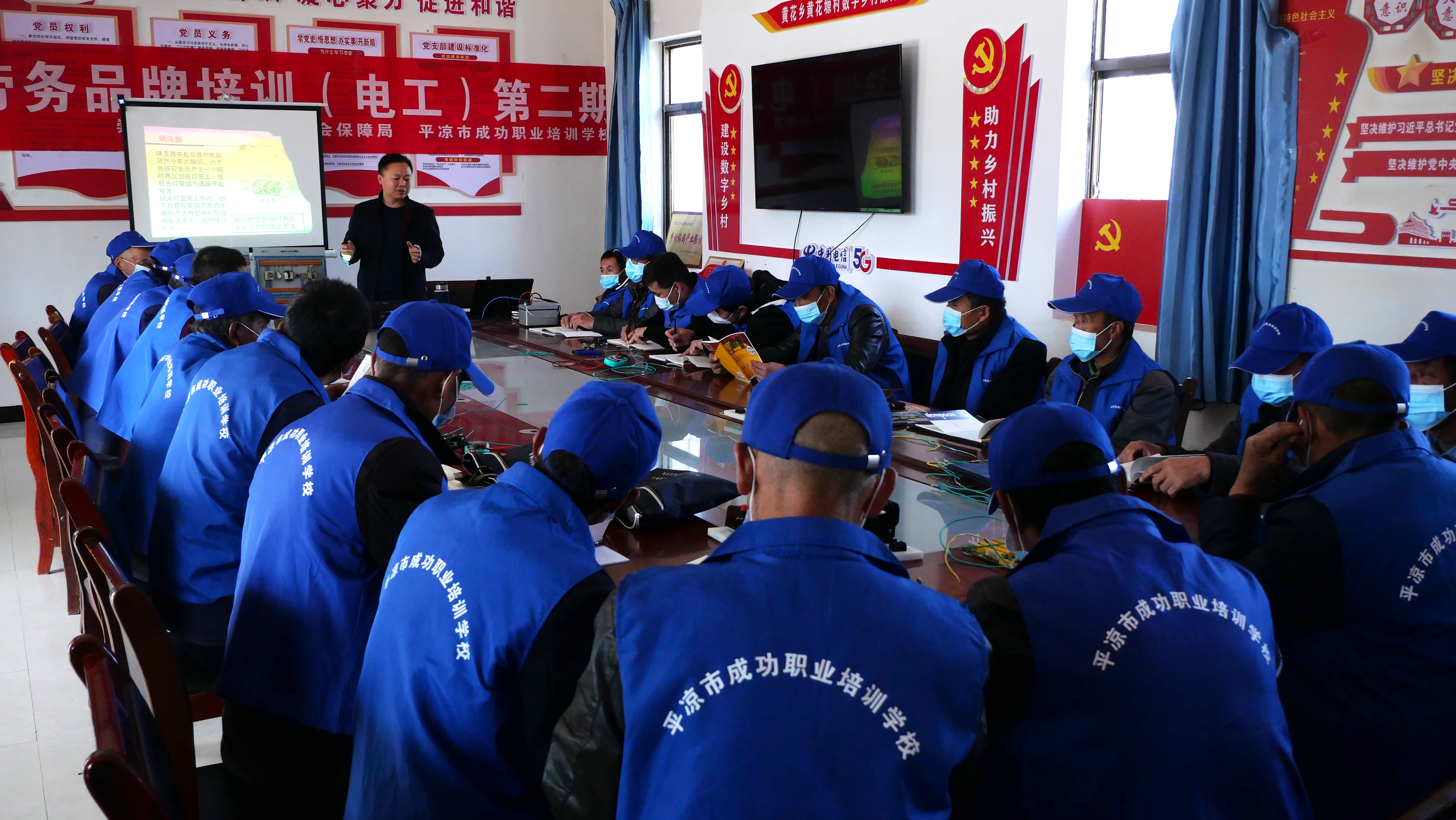 3月29日,记者在黄花乡黄花源2023年劳务品牌第二期电工培训班上看到,每位学员面前都放置了电气元件与相配套的书籍,授课人员围绕电工安全操作规程、电工基础知识及设备维修等理论知识进行了详细解读,现场示范了电路故障维修、简单稳压电源安装和调试,指导学员实际操作,并对实际操作过程中在的问题进行了耐心解答。
