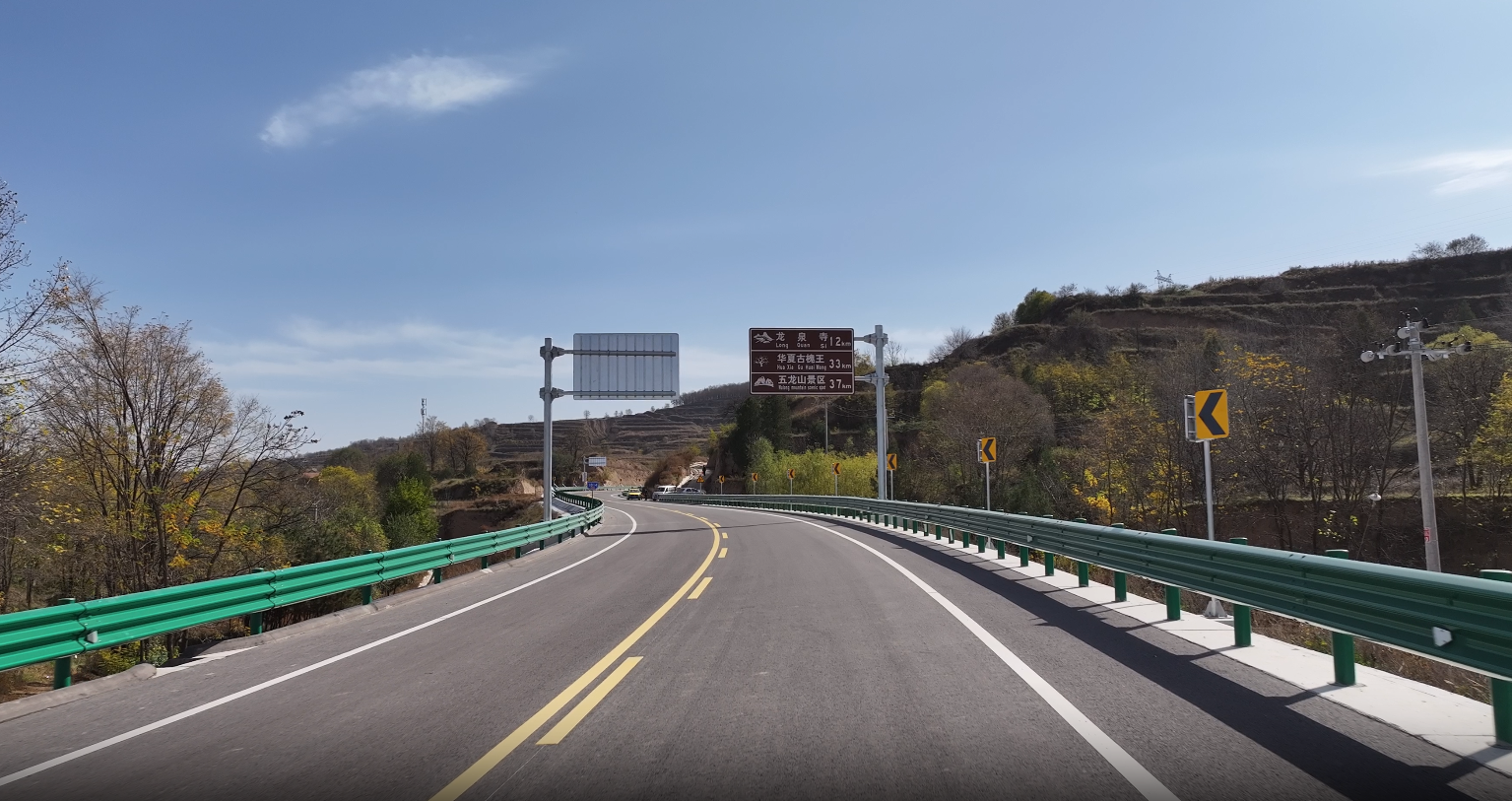 记者 孙悦:开新路焕新颜,我现在所在的位置是崇信散花沟的1#大桥,今天是11月3日,在上午10点的时候,G312崇信至花所段这条新路已经正式建成通车了,我们可以看到在这条新路上标识牌和标线都非常清晰,路面很平整,已经有车辆在陆续通行,这条新路的建成为市民出行提供了更大地便利。