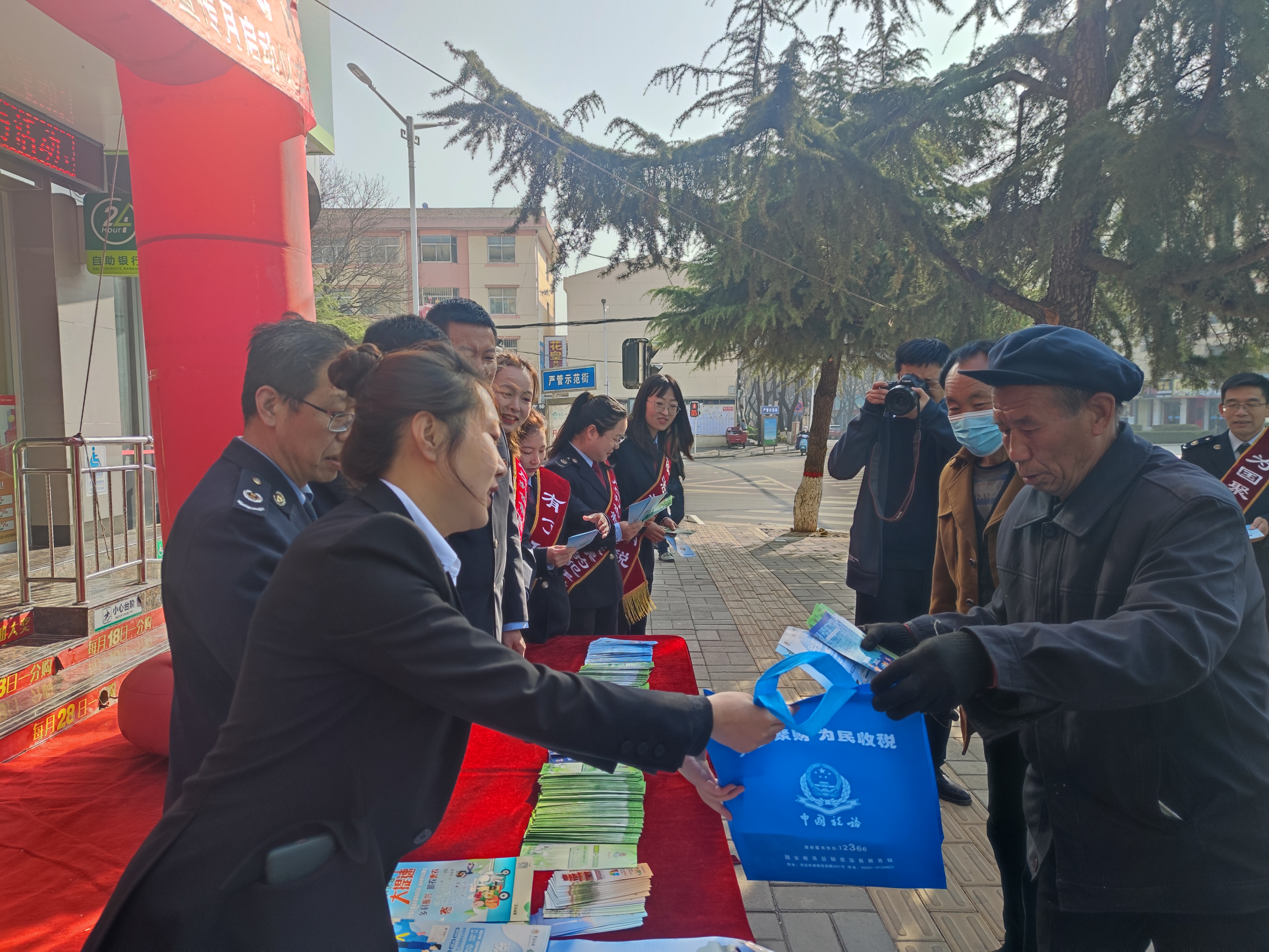 活动现场,邮政公司工作人员和税务干部一同化身宣传员,现场宣传便民办税春风行动措施、个人所得税汇算及7项附加扣除项目、六税两费优惠政策、小规模纳税人、小微企业税收优惠政策,耐心细致地为纳税人缴费人答疑解惑、讲解政策,并为他们送上税收宣传大礼包。