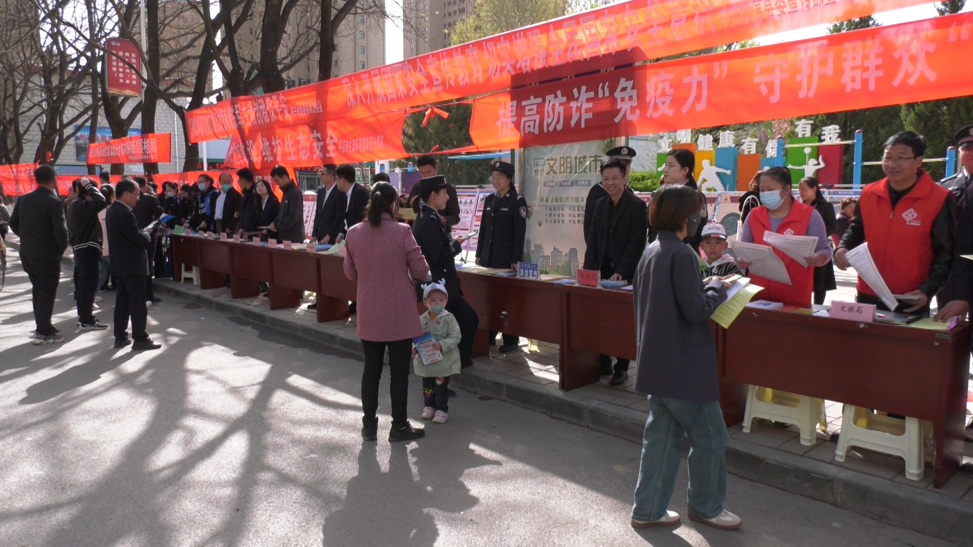 活动现场,“践行总体国家安全观 以新安全格局保障新发展格局”、“增强国家安全意识 保障国家长治久安”等横幅赫然醒目,工作人员和普法志愿者通过发放宣传资料、摆放宣传展板、播放宣传视频和询问讲解等形式,向广大群众积极普及国家安全法,网络安全法,预防电信诈骗、个人信息保护等相关法律法规知识,同时宣讲保守国家秘密法、民法典、宪法等普法知识,引导和教育广大群众树牢总体国家安全观,营造全民共筑安全屏障的浓厚氛围。