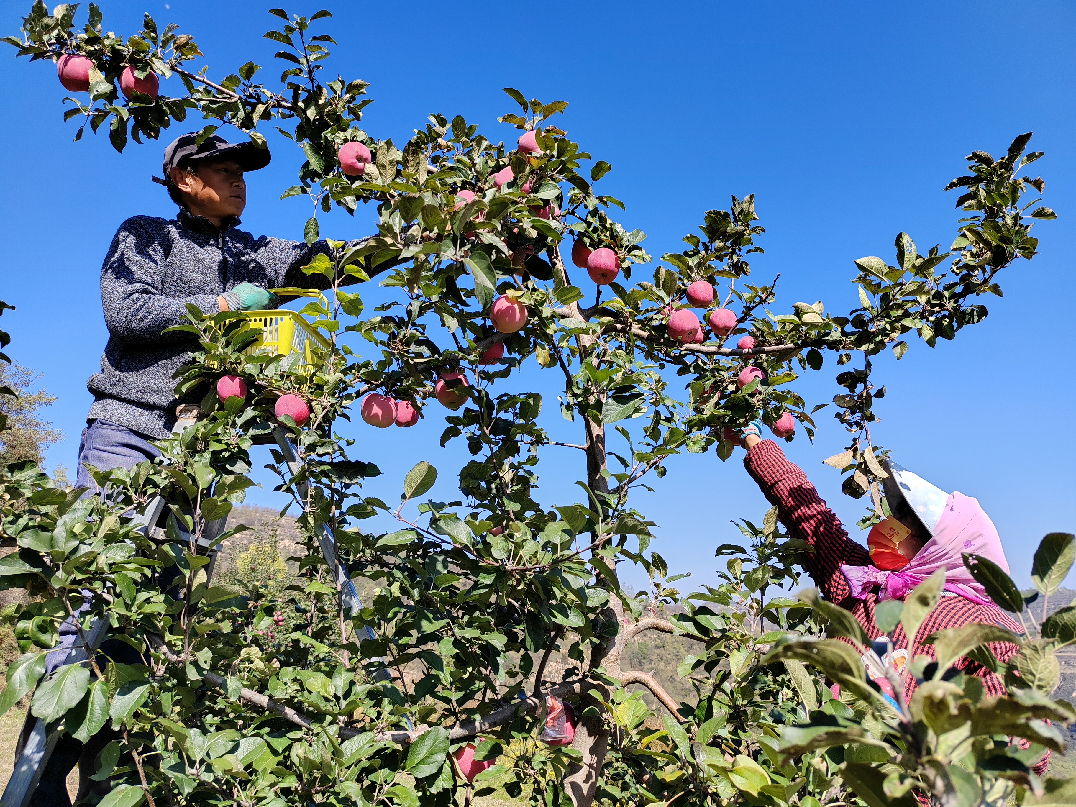 山地苹果是科技创新和农民辛勤劳动的共同结晶,技术人员的手把手教,农民的认真学习让这片土地多了一点色彩,农民的脸上也增添了一抹喜悦。