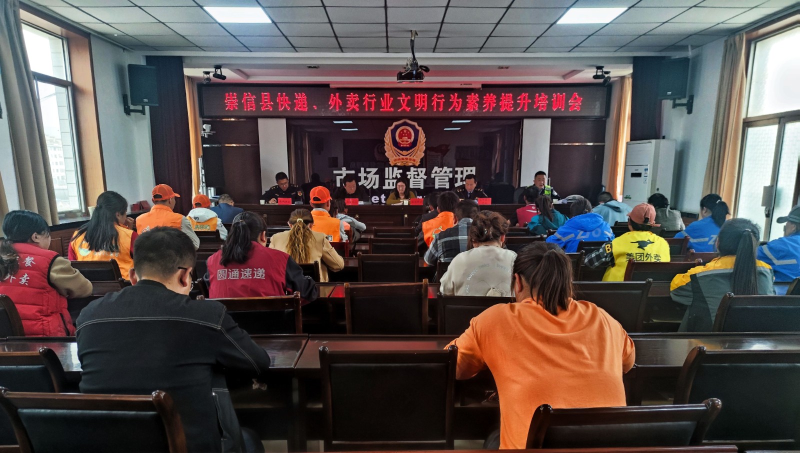 在快递、外卖行业文明行为素养提升培训会上,县文明办、市场监管、交警、执法、交通等部门围绕文明行为素养、文明交通行为、交通乱象治理、快递行业安全运营、网络食品经营行为规范等方面进行了培训,进一步提升全县快递、外卖从业人员职业综合素质能力,让快递外卖真正成为流动的文明窗口、靓丽的城市风景线。