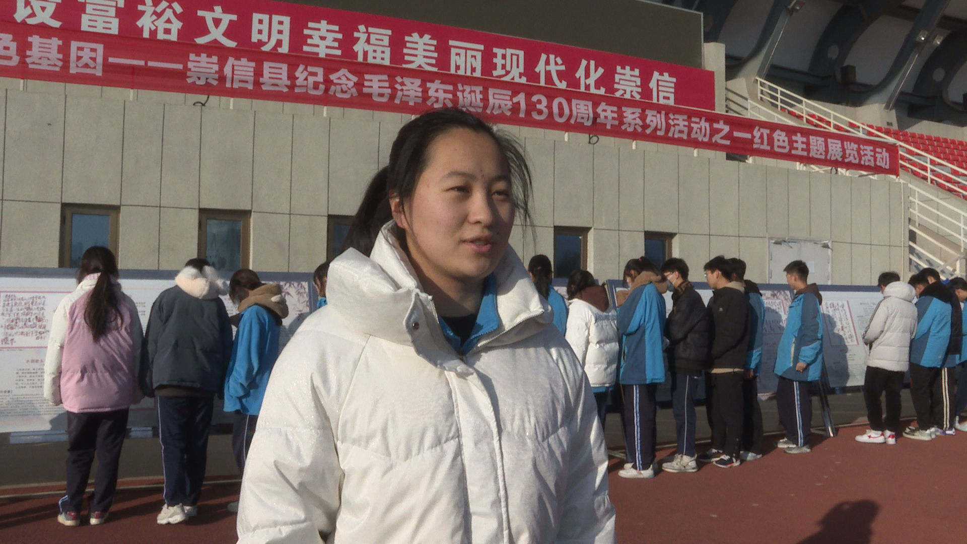崇信一中教师于雅琪:“本次纪念毛泽东同志诞辰130周年活动,既是一次对伟人功绩的缅怀,更是一次对伟人精神的弘扬,崇信一中全体师生将共同铭记伟人功绩,昂首砥砺前行,用实际行动继承红色血脉,持续谱写教育新篇章。”