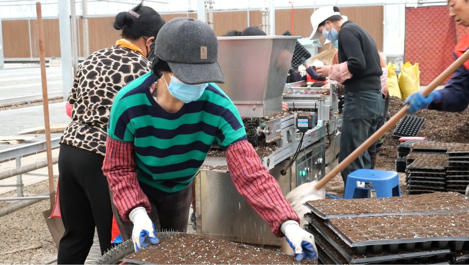 好的菜苗,是新一年收获的关键,也是农业生产中关键一环。在其他的蔬菜大棚内,工人们正紧张忙碌的开展今年的蔬菜育苗工作,大家熟练的进行装盘、点籽、摆盘、浇水覆膜,大家分工协作,认真做好每道育苗工序,为今年的蔬菜生产栽培丰收的希望。