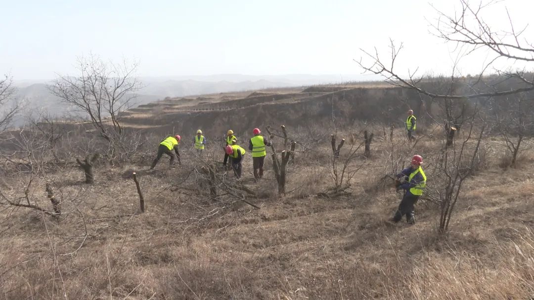 出境记者高亮:果园改造忙春耕 抢抓农时不负春,我现在所在的位置是崇信县锦屏镇文家咀村,在我的身后,工作人员正在为老旧杏树高接换优,进行新品种嫁接,使老旧果园焕发生机。
