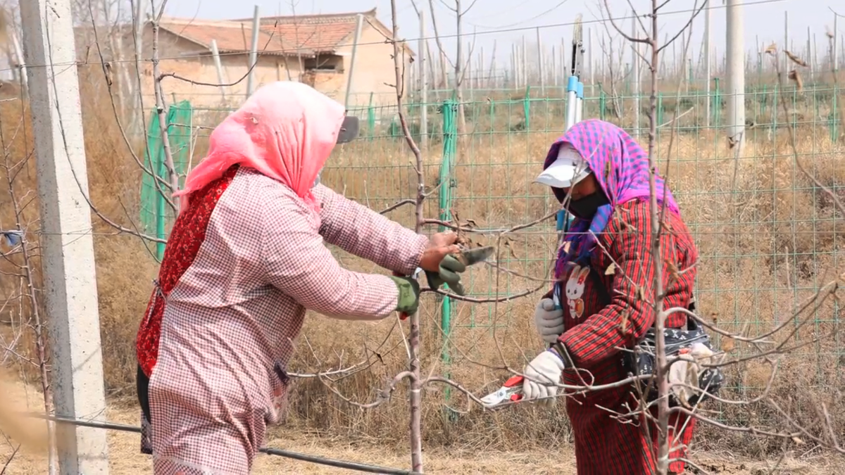 “‘三分建,七分管’科学有效地对果树进行培育、修剪、管理是实现品质产量提升的关键。”张军才介绍,为果树修枝、除草、喷药,也是为了能抑制杂草生长,减轻病虫危害,争取让果树更好地开花挂果,卖个好价钱。同时,在他果园里务工的群众不仅增加了收入,也学习到了果园管护技术。