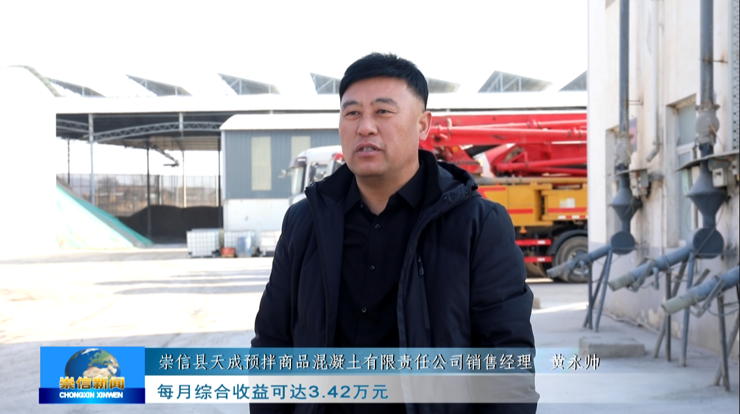 与黄寨镇寒风凛冽中的“大风车”不同,在崇信县天成预拌商品混凝土有限责任公司,一块块太阳能电板整齐地排列在屋顶上,在阳光的照耀下熠熠生辉,源源不断的将太阳能转化为清洁电能,帮助企业实现节能降碳、绿色发展,自2023年4月并网发电以来,总发电量351.3MWH。