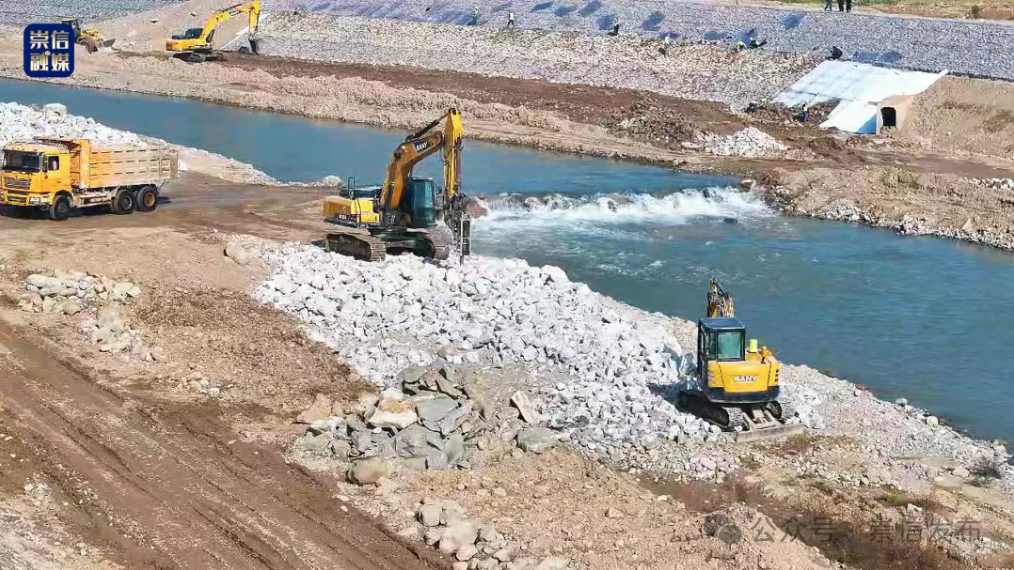 金秋时节,正是项目建设的“黄金期”。在我省首批国家级幸福河湖建设项目——汭河(崇信县段)幸福河湖的建设现场,施工方正开足马力,全速推进工程建设,致力打造一条“堤固、河畅、水清、岸绿、景美”的生态廊道,为高质量发展注入绿色动能。