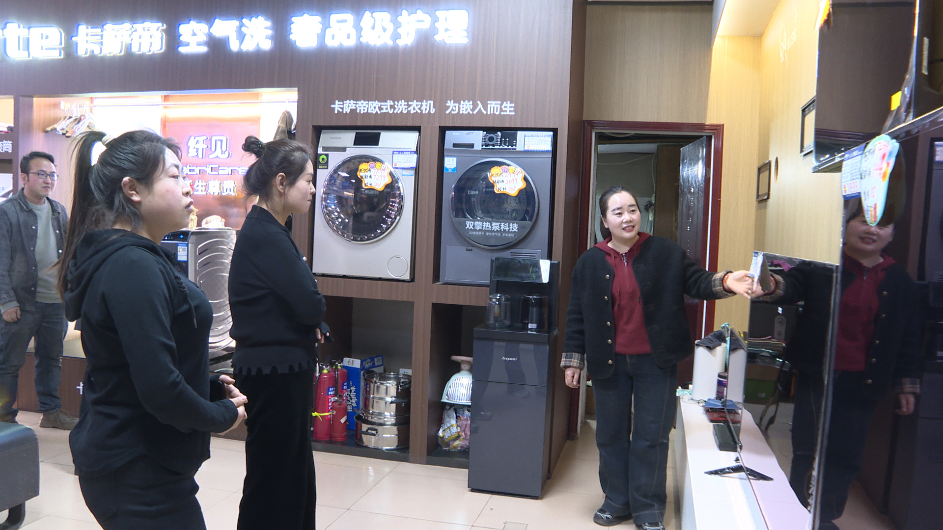 近日,记者走进崇信海尔专卖店和美的专卖店,现场各类家电集聚,冰箱、彩电、空调等家用电器一应俱全,“补贴”的标识随处可见,吸引了不少消费者前往咨询选购,呈现购销两旺的态势。