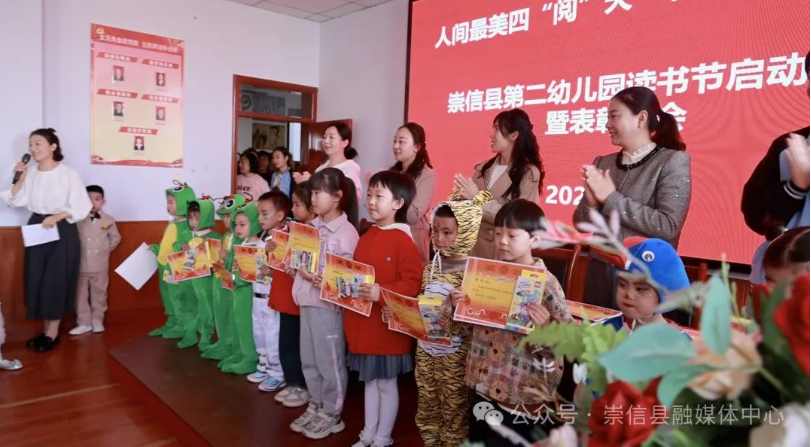 在第30个世界读书日来临之际,崇信县第二幼儿园于4月22日举办"最美人间四'阅'天 书润童心伴成长"读书节启动仪式暨表彰大会,通过多元活动培养师幼阅读兴趣,构建书香校园。
