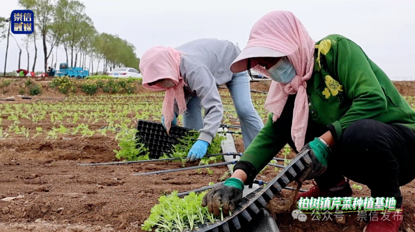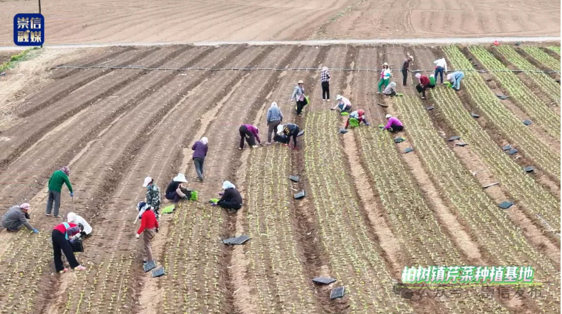 4月23日,在柏树镇马新庄村芹菜种植基地,一畦畦嫩绿的芹菜苗被移栽到露地,农人弯腰劳作的背影与芹菜苗舒展的新叶交织成画,孕育着"芹"劳致富的新希望。