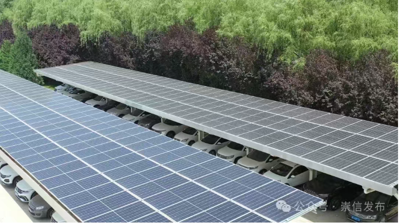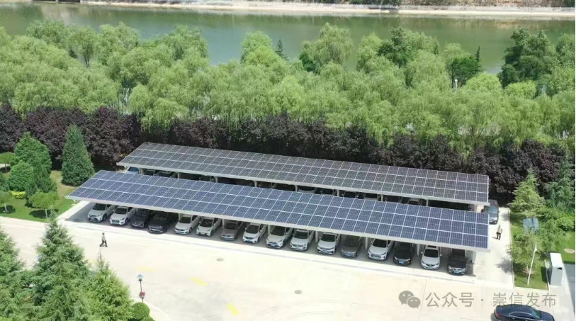 崇信县机关事务服务中心副主任刘伟贤说:“为落实国家双碳战略,推动节约型机关创建,县机关事务中心结合统办楼院内停车位布局,协调县芮阳公司投资建设了统办楼分布式光伏电站,安装光伏发电组件676块,装机容量392千瓦。自2024年5月并网以来,累计发电量34.5万度,自用电量25万度,自用比例达到72.5%,累计节省电费5万元,进一步降低了行政机关运行能耗和碳排放,为全县行政机关节能减排发挥了示范带头作用。”