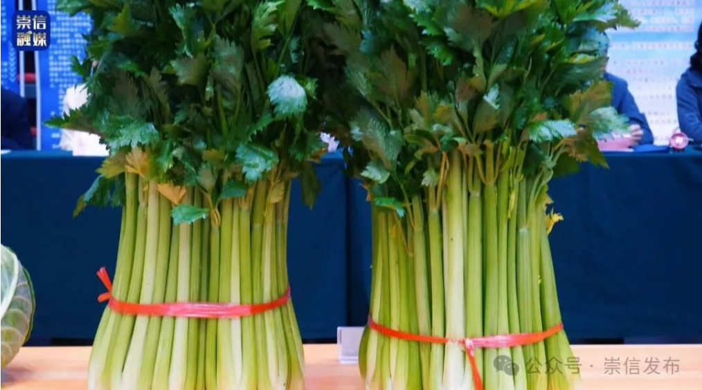 蔬菜产业展区里,崇信芹菜、鲜嫩食用菌、多彩辣椒、饱满甘蓝等时令蔬果鲜嫩欲滴,甜瓜与贝贝南瓜更添清甜气息,尽显“菜篮子” 的丰盈鲜活。