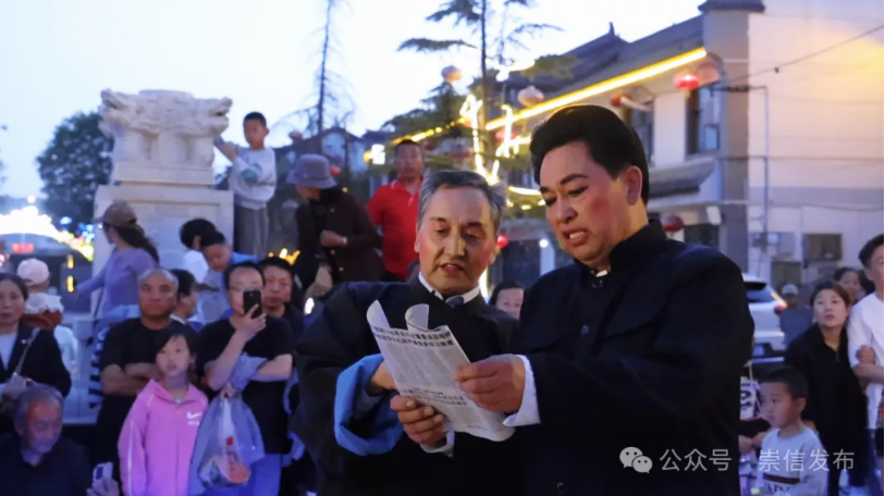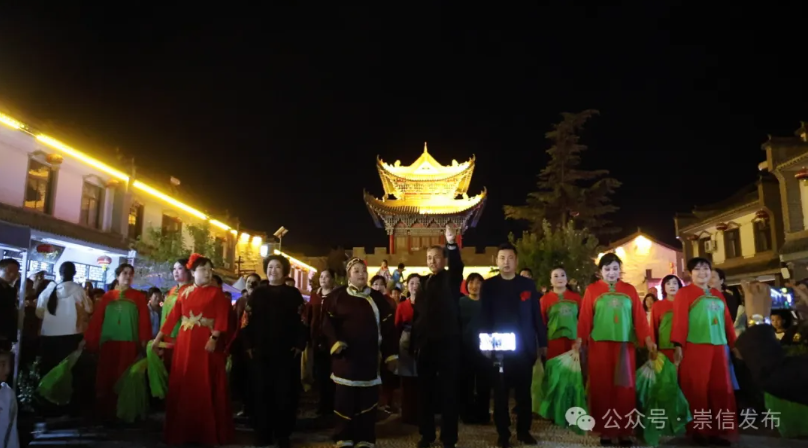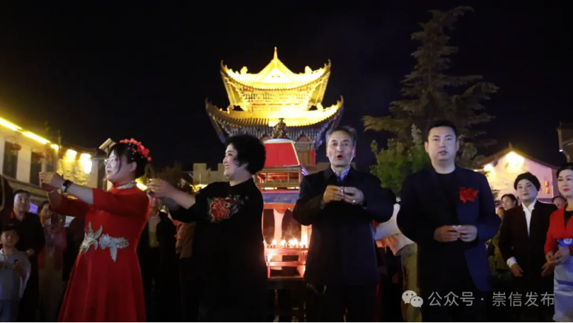 5月1日晚,崇信县梁坡水街灯火璀璨,实景剧《龙泉风韵》在此首演。这场由秦韵戏曲公益培训社联合弦子腔演艺公司、钟银娥民俗传承演艺、宇翔秦腔演艺共同打造的视听盛宴,通过历史、民俗与红色文化的交融,为观众呈现了一幅生动立体的崇信文化长卷。