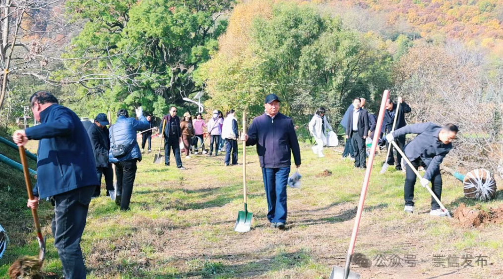 经过一上午的辛勤劳动,数十株新栽的国槐树苗错落有致、迎风挺立,在秋日阳光下焕发出勃勃生机。这些树木既是荣退干部们为家乡留下的绿色纪念,更是县委县政府重视老干部工作、关爱退休干部的生动体现。老干部们以实际行动践行了“绿水青山就是金山银山”的发展理念,为崇信绿色发展注入了温暖的“银龄”力量,谱写了一曲“荣光传承、银龄添绿”的动人篇章