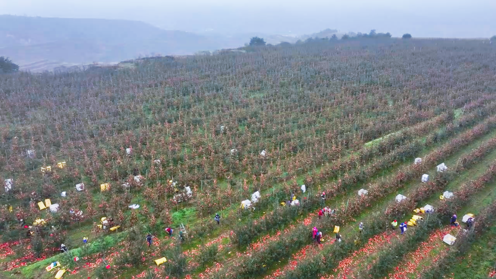 采摘工人石宝银说:“今年的苹果长势、果型特别好,我们来到这儿采摘苹果,每天工资大约是100元1,距离家也特别近,对于我们来说也是一定的收入,我们也感觉挺好的。”